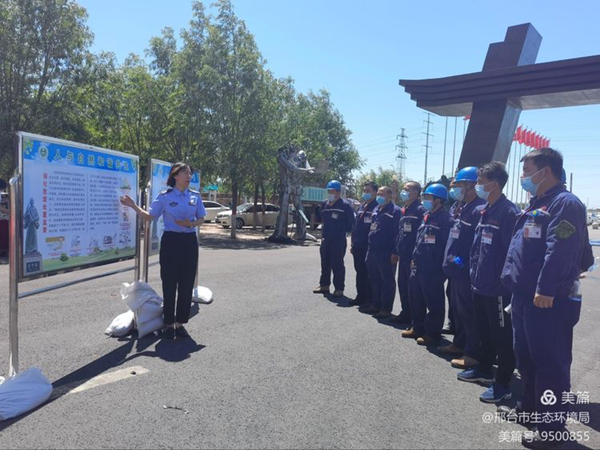 邢台市生态环境局为企业发放宣传资料及宣讲新固废法和危险废物管理等相关知识。