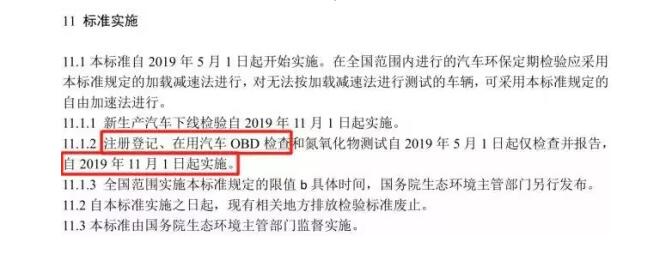 第二步,对于标准新增内容,如柴油车NOx检测和OBD检查,2019年11月1日起正式实施。根据大气污染防治法的有关规定,具备条件的地区可经省级人民政府批准并经向生态环境部备案后,可早于上述日期提前实施在用车排放标准。